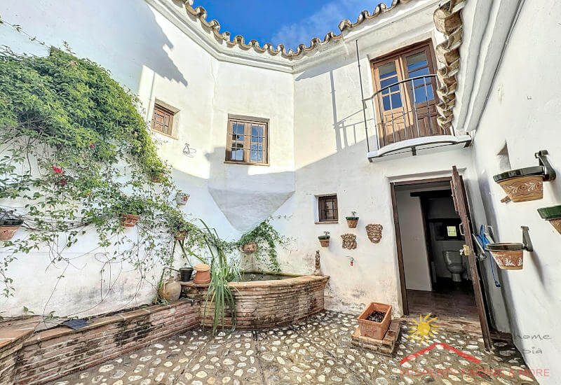 From the kitchen, a door takes you into a small hallway giving access to the pretty cobblestoned central patio with a small fish pond. Back in the hallway there is a single bedroom (2.55 x 3 m) and a family bathroom (1.90 x 1.65 m).
