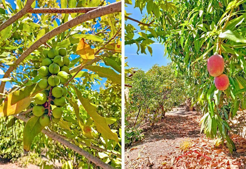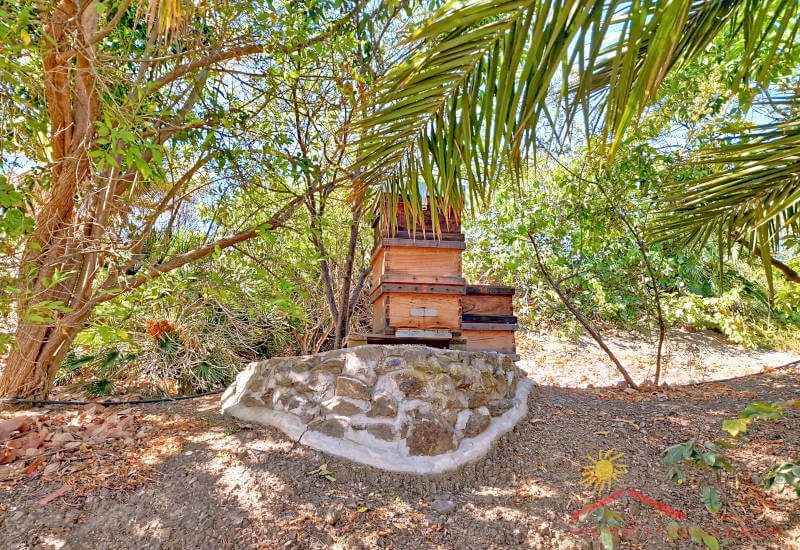 De prachtige tuinen zijn een waar liefdeswerk; veel van de planten en bomen zijn gekweekt uit zaailingen die de eigenaren in de afgelopen 20 jaar van hun reizen over de hele wereld hebben meegebracht. Er zijn verschillende soorten palmen, waaronder Vossenstaart en Washingtonia, evenals citrusbomen, mango- en avocadobomen, macadamia, vijg, appel, pitahaya, pistache, pecan en vele andere exotische variëteiten. De bijenkorven zorgen voor heerlijke honing! Om dit allemaal goed te kunnen onderhouden is er een computergestuurd irrigatiesysteem dat water gebruikt uit de privé bron.