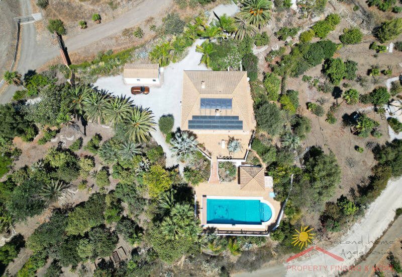 NIEUW: Cortijo Los Elefantes, zo genoemd vanwege de liefde van de eigenaren voor olifanten, is een prachtig en uniek object. Deze moderne cortijo ligt op een rustige plek met schitterend uitzicht over de tropische tuinen, naar de fonkelende Middellandse Zee en de bergen. Er zijn 4 slaapkamers, 2 badkamers en een ruime overdekte veranda, evenals een groot verwarmd zoutwater zwembad met een overdekt terras, zodat je zowel van zon als schaduw kunt genieten. Dankzij het vroegere beroep en de interesse van de eigenaar in nieuwe technologie, is het huis uiterst energiezuinig, met speciale voorzieningen in het huis, de tuin en het zwembad.